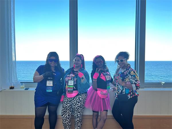 Ashley at the LMA23 "Back to the 80s Party" with Diana Lauritson (Senior Marketing and Business Development Manager, Hogan Lovells), Tahisha Fugate (Sr. Marketing & Business Development Manager, Axinn, Veltrop & Harkrider LLP), and Ashley Black (Diversity, Equity, Inclusion & Belonging Manager, Porter Hedges LLP)