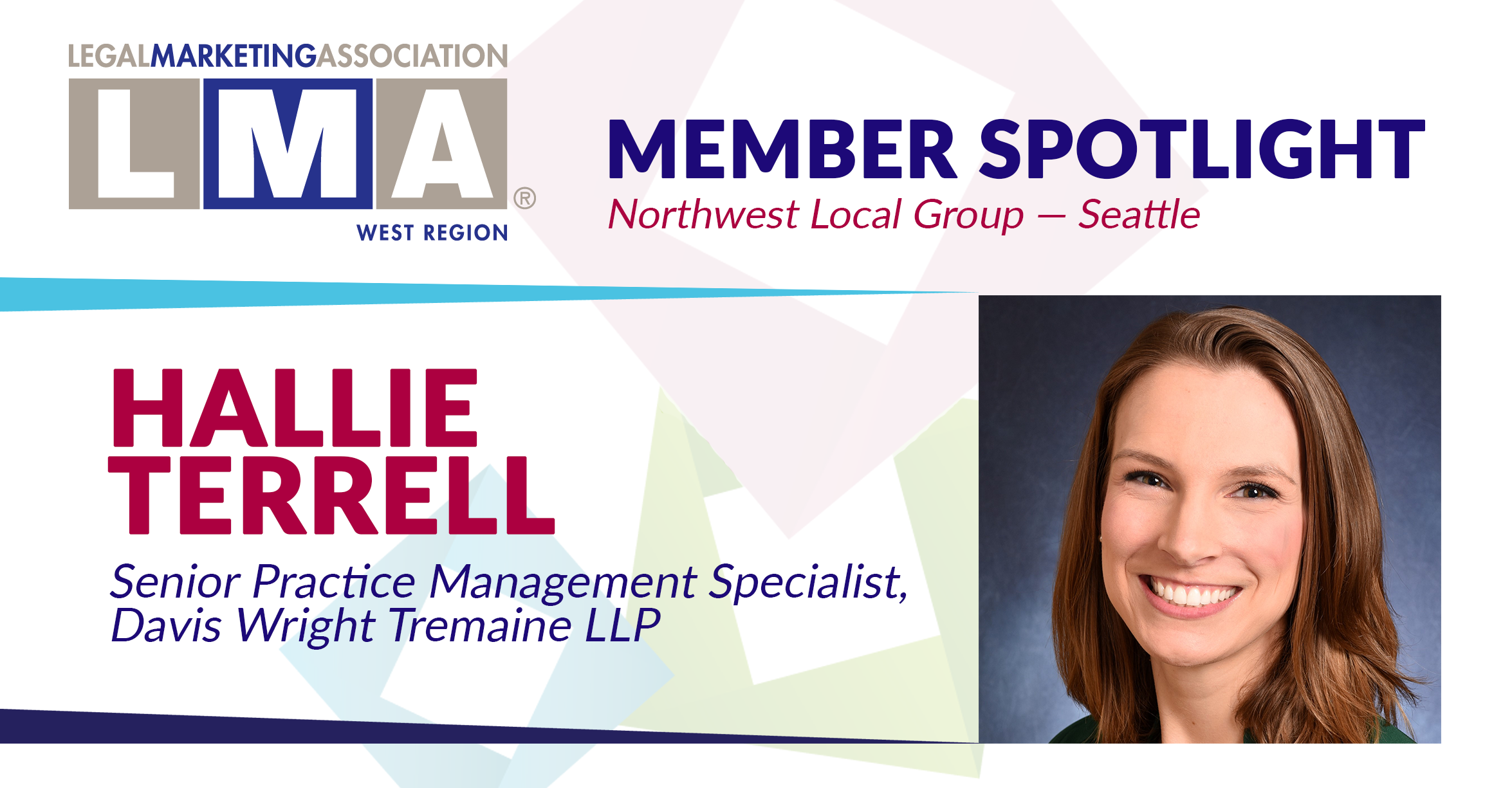 This month, the LMA West Region is excited to feature Hallie Terrell, the Senior Practice Management Specialist at Davis Wright Tremaine LLP! Hallie is a member of the Seattle city group that is part of the LMA Northwest local group. Read more about Hallie, including her favorite parts about being an LMA member and how she is successful at working with attorneys!