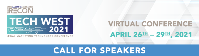 The LMA Tech West Conference is an annual gathering, where legal marketing & business development professionals from across the country explore the latest technology trends and tools that impact the legal industry. In 2021, LMA Tech West will take place virtually — breaking down geographic barriers and creating opportunities for spreading innovative technology ideas.