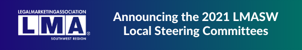 We are pleased to announce the following members will serve in leadership on the LMA Southwest Region Local Steering Committees in 2021. The Local Steering Committees play a crucial role in delivering value to the LMA Southwest members through membership engagement, educational and professional development programming, networking opportunities, and knowledge sharing on a year-round basis. Congratulations to our 2021 LMA Southwest Region Local Steering Committee members:Austin