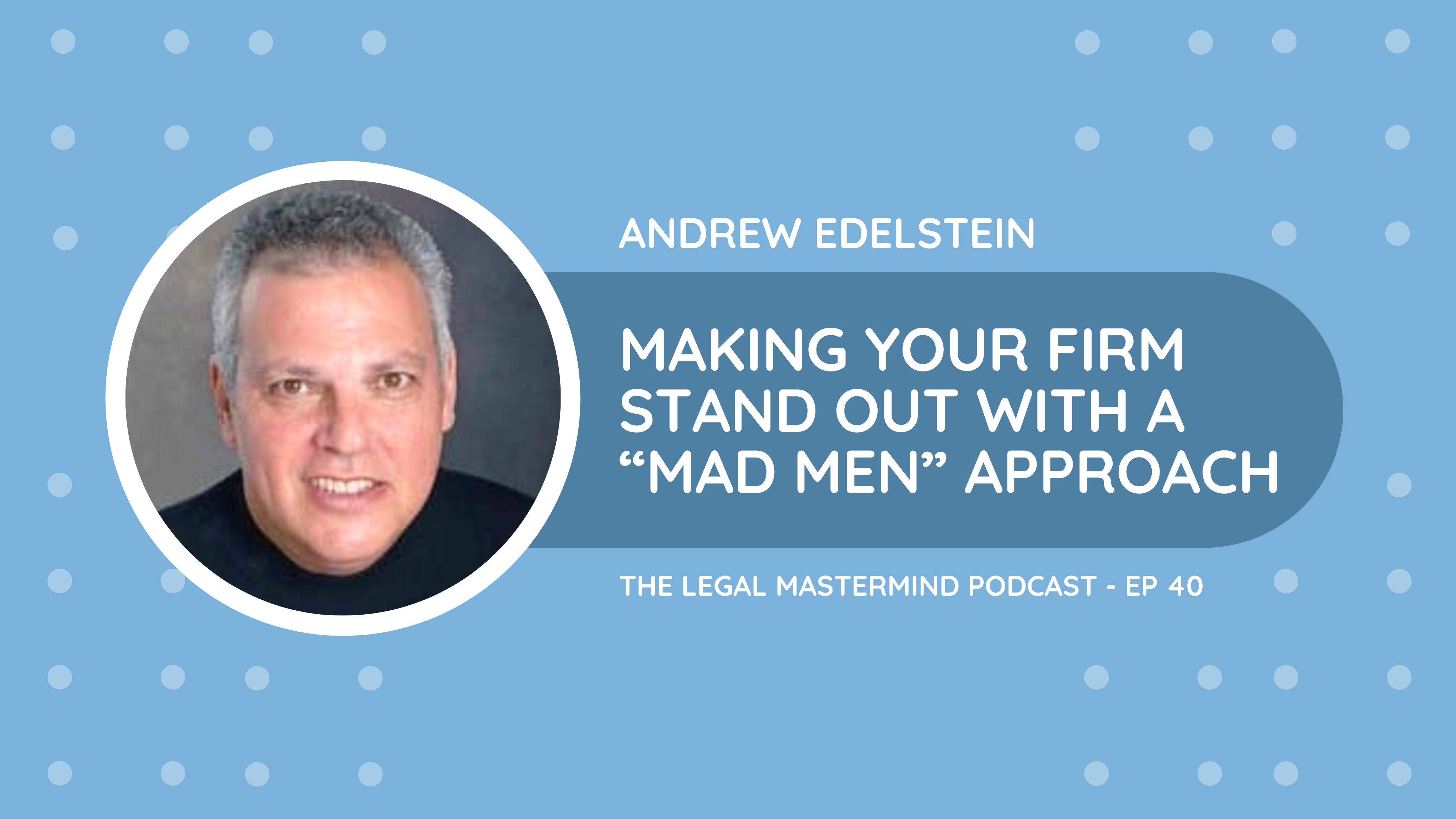 Andrew Edelstein, Copywriter and Creative Director for Edelstein Communications, was interviewed on the Legal Mastermind Podcast on Monday, May 11, 2020. In the episode titled, "Making Your Firm Stand Out With A "Mad Men" Approach," Andrew discussed bios and the resistance from lawyers, finding differentiation in your law firm, and copywriting vs. content writing.
