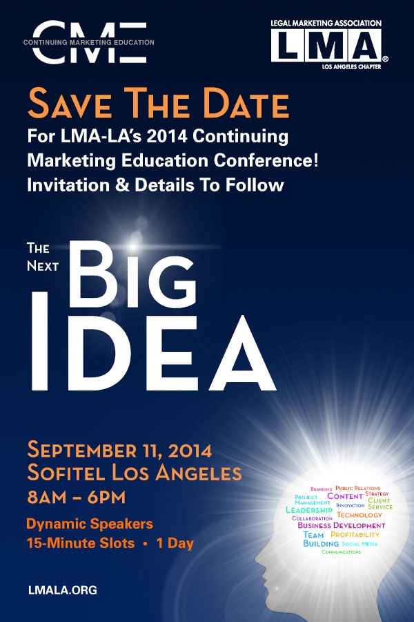 Please join us for the 12th annual Continuing Marketing Education (CME) conference on Thursday, September 11, 2014. “The Next BIG IDEA” continues our growing tradition of bringing together dynamic speakers, industry leaders, and creative thinkers for a program dedicated to elevating our industry and inspiring our evolution.