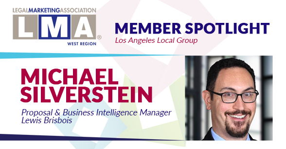 This month, the LMA West Region is excited to feature Michael Silverstein, the Proposal & Business Intelligence Manager at Lewis Brisbois, a national, full-service law firm headquartered in Downtown Los Angeles. Michael is a member of the Los Angeles local group.