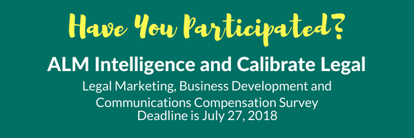 ALM Intelligence and Calibrate Legal are conducting an important confidential Legal Marketing, Business Development and Communications Compensation Survey and we want to encourage your participation. This survey will take 10-12 minutes to complete. Your participation is greatly appreciated.  Please complete this survey by July 27th, 2018. All participants will receive the executive summary of the results.