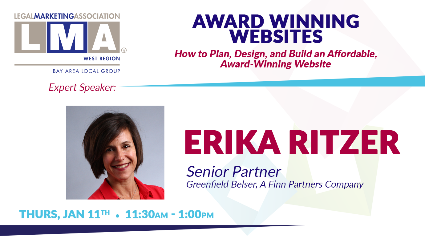 At the 2017 LMA Annual Conference, three Your Honor Awards were handed out in the website category, recognizing excellence in website design at different budget levels. All three 1st place awards went to clients of Greenfield Belser, despite each firm having dramatically different budgets and in-house marketing resources. Whether you are starting a new blog or rebranding the firm website, the process of planning, designing, and building a website involves many important steps and key stakeholders. Erika Ritzer, of Greenfield Belser, will walk through the process of building of three award-winning websites, and highlight important themes for creating a website that wows!
